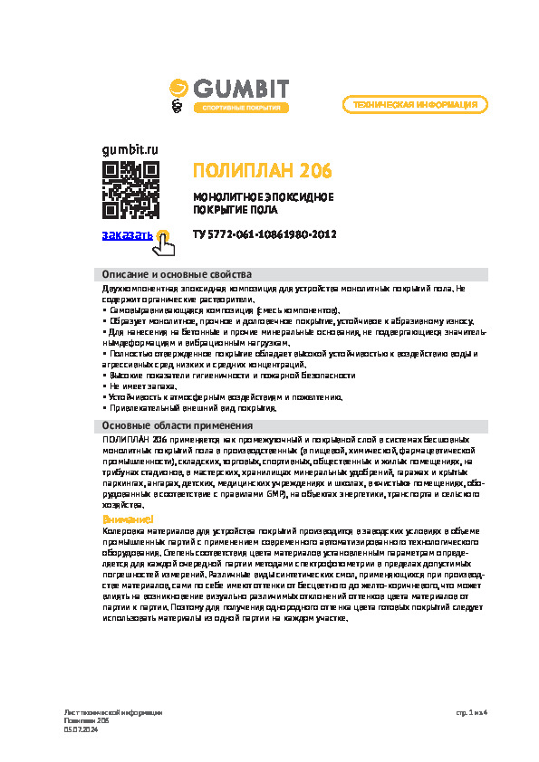 Полиплан 206 используется для создания промежуточного и покрывного слоя бесшовных монолитных покрытий пола. Отсутствие вредных веществ в составе позволяет применять эпоксидную композицию не только в складских, производственных и торговых помещениях, но и в жилых здания, детских и медицинских учреждениях.