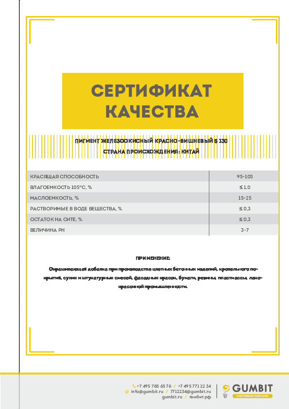 Пигмент неорганический железоокисный желтый для окрашивания резиновой крошки